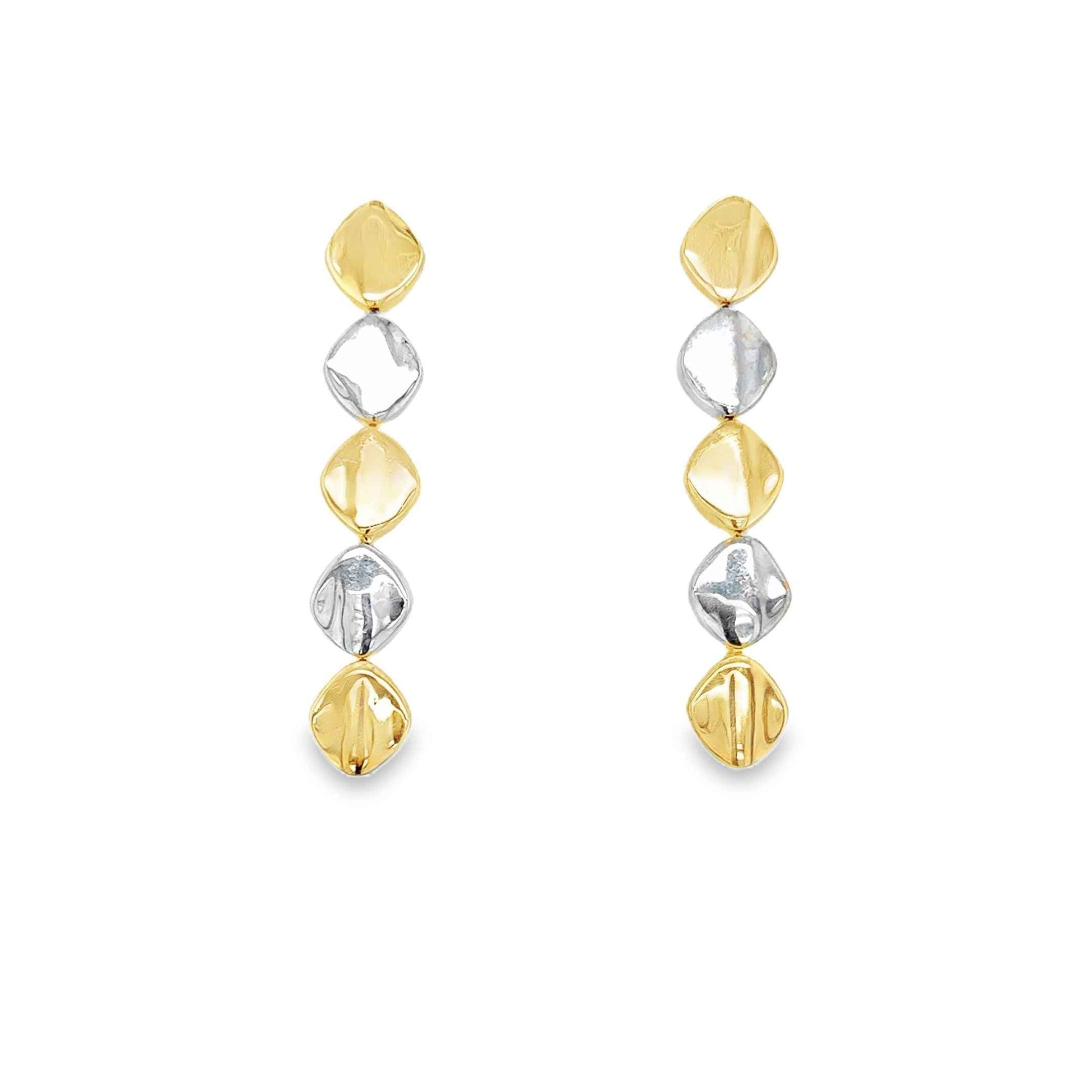 Make a statement with Miapia’s Dual Harmony Drop Earrings, where gold vermeil and rhodium-plated sterling silver come together in perfect rhythm. Featuring alternating organic-shaped discs, each piece shines with a unique sculptural texture, blending two-tone elegance for a contemporary flair.