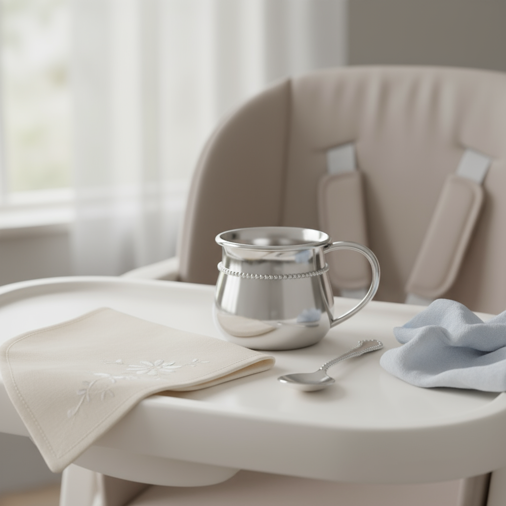 Beaded Bulge Cup with Plain Handle-Engraveable